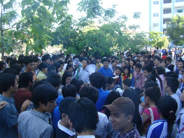 Các sinh viên tình nguyện rất vất vả trong việc ổn định trật tự
