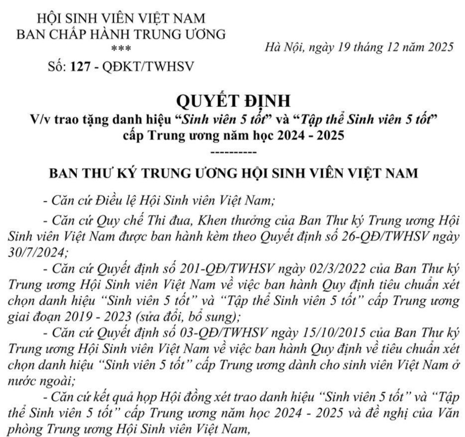 Đây là danh hiệu cao quý, ghi nhận quá trình phấn đấu bền bỉ, không ngừng rèn luyện và phát triển toàn diện của sinh viên trên năm tiêu chí: Đạo đức tốt – Học tập tốt – Thể lực tốt – Tình nguyện tốt – Hội nhập tốt. Thành tích này không chỉ là sự khẳng định cho nỗ lực cá nhân xuất sắc của sinh viên Huỳnh Xuân Khánh, mà còn thể hiện tinh thần học tập nghiêm túc, bản lĩnh, trách nhiệm và khát vọng cống hiến của sinh viên Trường Đại học Lạc Hồng.