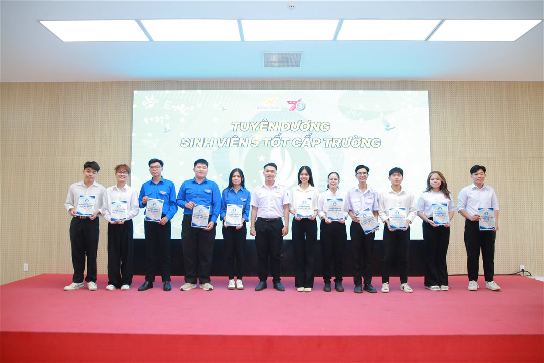Đồng thời, Hội Sinh viên Trường đã trao Giấy chứng nhận Danh hiệu “Sinh viên 5 Tốt” cấp Trường năm học 2024 – 2025 cho 53 sinh viên xuất sắc – những tấm gương tiêu biểu trong học tập, rèn luyện đạo đức, thể lực, tình nguyện và hội nhập, góp phần lan tỏa hình ảnh sinh viên Lạc Hồng năng động, bản lĩnh và trách nhiệm.