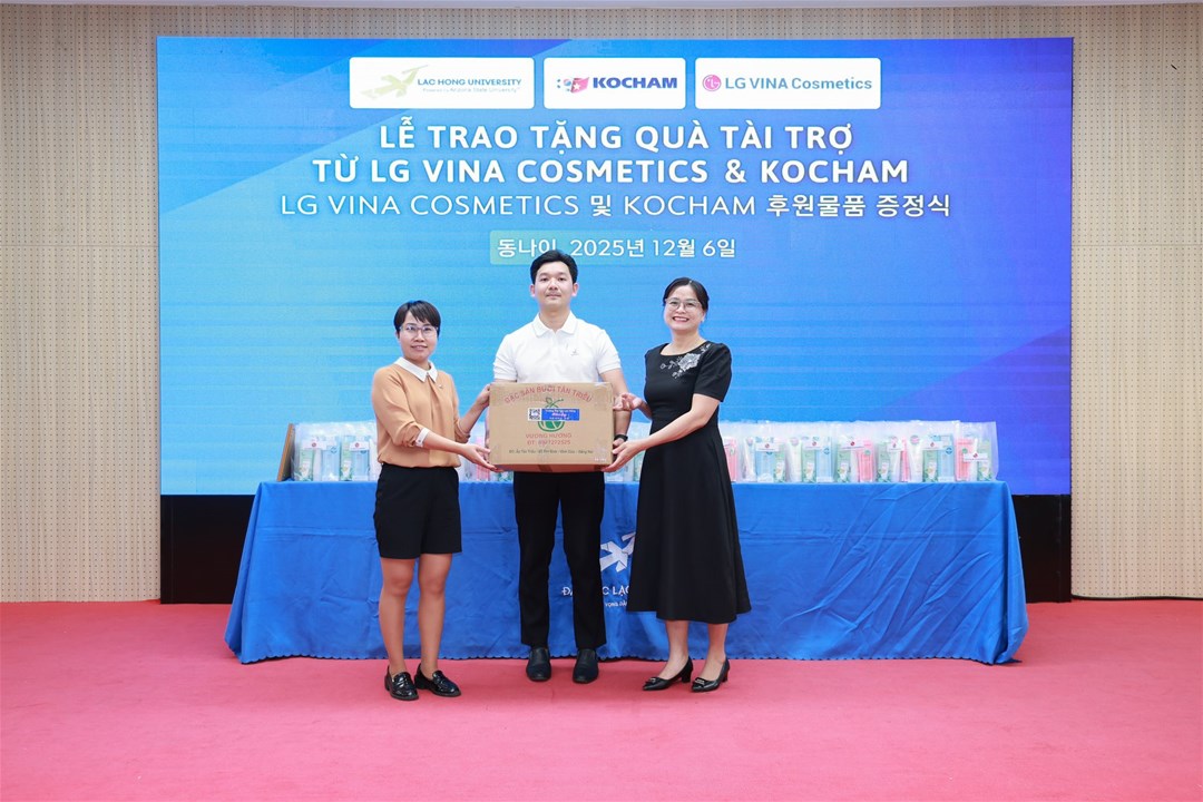 Thay mặt Nhà trường và Ngành Hàn Quốc học, xin gửi lời tri ân đến LG Vina Cosmetics và Hiệp hội các Doanh nghiệp Hàn Quốc tại Việt Nam KOCHAM đã dành sự hỗ trợ ý nghĩa cho sinh viên trường Đại học Lạc Hồng. Đây là động lực để sinh viên tiếp tục học tập tốt và mở rộng cơ hội kết nối với các doanh nghiệp Hàn Quốc trong tương lai.