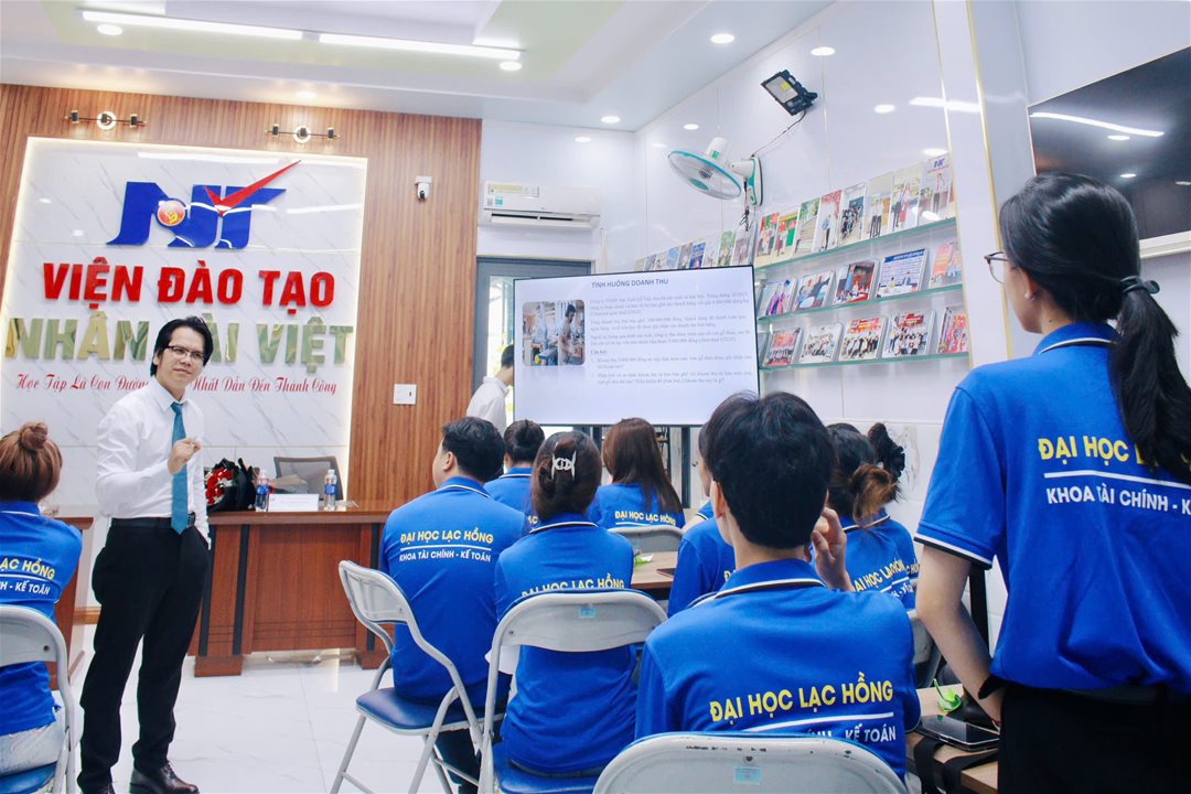 With the aim of enhancing practical experience and enabling students to gain closer access to the professional working environment, on the morning of November 11, 2025, the students of class 24KT111, Faculty of Finance – Accounting, Lac Hong University, participated in a field trip to Nhan Tai Viet Accounting – Auditing Co., Ltd.