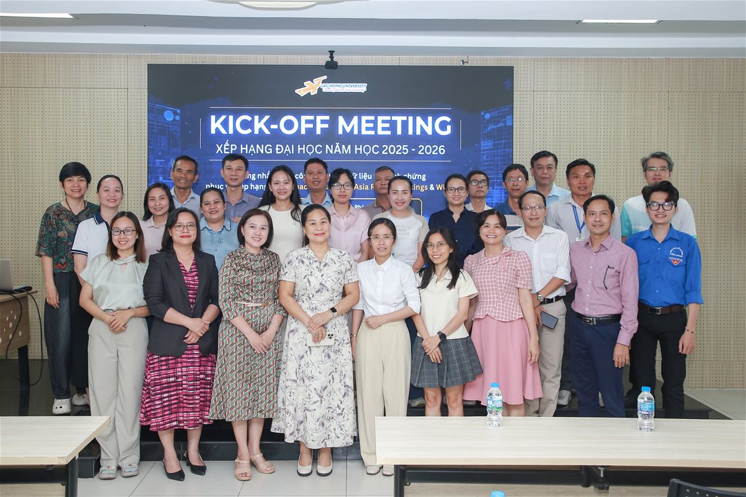 Chiều ngày 8/4/2026, Phòng Khảo thí và Đảm bảo chất lượng tổ chức cuộc họp khởi động nhằm thống nhất kế hoạch tham gia các bảng xếp hạng đại học quốc tế, bao gồm THE, QS và WURI. Sự kiện đánh dấu bước đi chiến lược trong việc nâng cao uy tín học thuật, chuẩn hóa hệ thống dữ liệu và tăng cường hội nhập quốc tế của nhà trường.