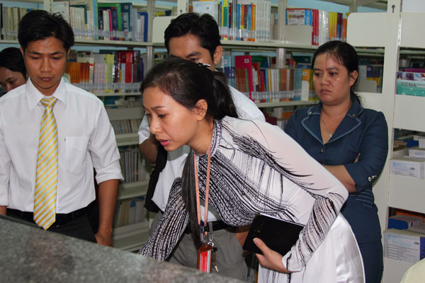 On this occasion, the delegation was introduced Lac Hong University’s library system as well as its management and development by Deputy Director of Information and Resources Center Huynh Cao Tuan. Mr. Tuan also shared experience in resources development, management by software and library operation to produce the highest effect with the delegation.