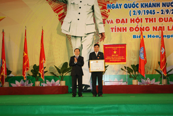 At the ceremony, Mr. Vo Van Mot – Chairperson of Dong Nai provincial People's Committee made a commemorative speech on the 65th anniversary of National Day of the Socialist Republic of Vietnam, jointly reviewing our nation’s gloriously historical traditions in August Revolution 1945. After that, Mr. Le Mai Thanh - Deputy Director of Department of Interior Affairs, Permanent Vice Chairman of Dong Nai provincial Emulation and Reward Council approved reports on the patriotic emulation movements in the past five years (2005-2010) and mission directions next five years (2010-2015).