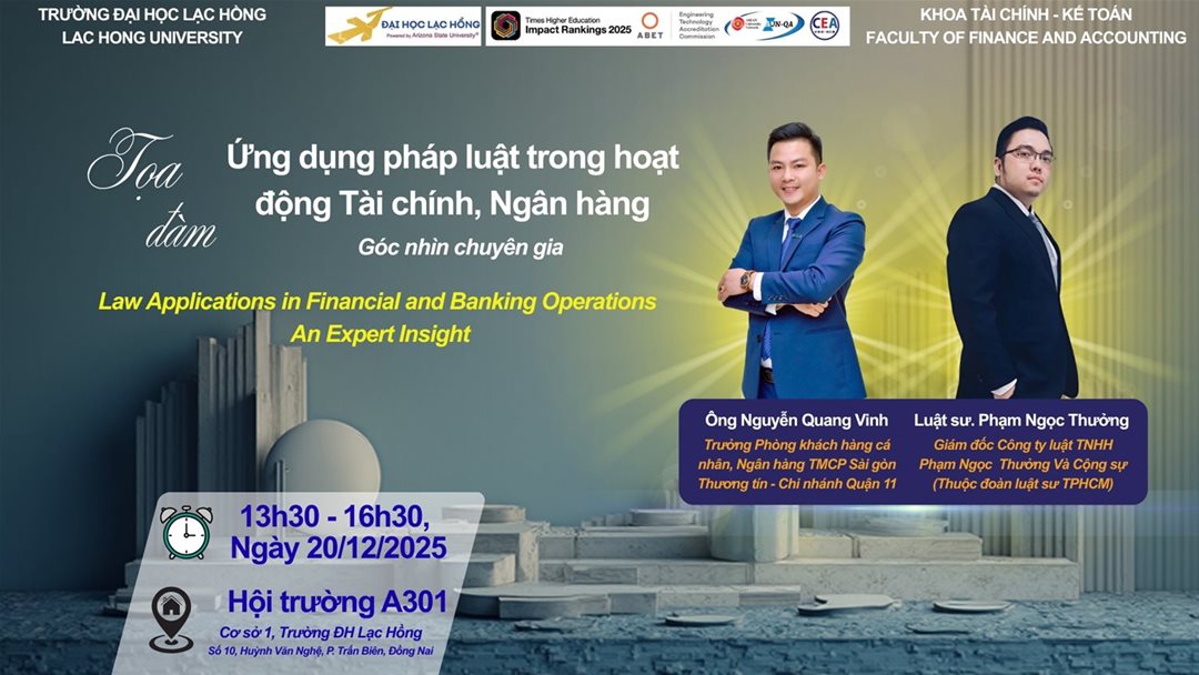 To enhance students’ practical knowledge and skills in applying laws to financial and banking operations, the Faculty of Finance and Accounting organizes a talk show entitled “Law Applications in Financial and Banking Operations – An Expert Insight”.