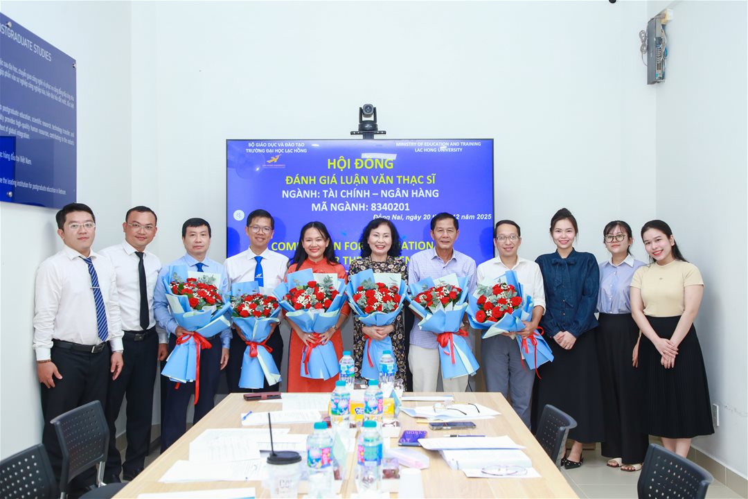 Ngày 20 tháng 12 năm 2025, tại phòng B107 (Phòng tiến sĩ) cơ sở 1 của Trường Đại học Lạc Hồng (LHU), Hội đồng đánh giá luận văn thạc sĩ chuyên ngành Tài chính - Ngân hàng đã tổ chức buổi bảo vệ luận văn cho 05 học viên. Buổi lễ diễn ra trong không khí trang trọng và đầy tính học thuật, với sự tham gia của các nhà khoa học, giảng viên uy tín và các chuyên gia đầu ngành.