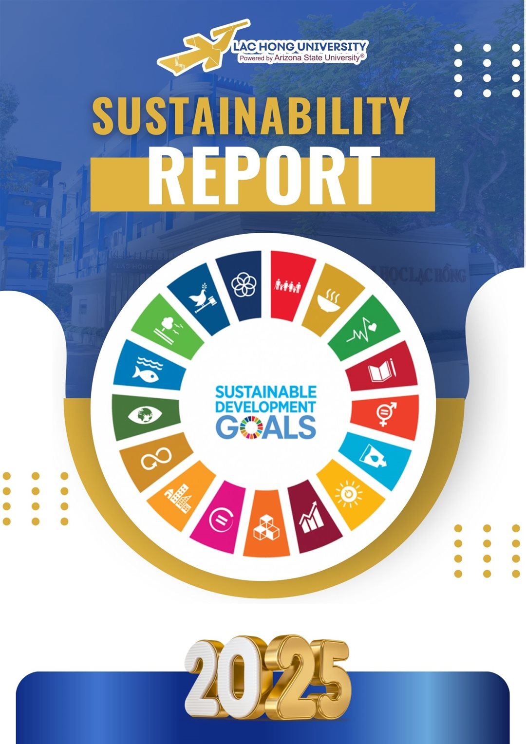 Lac Hong University is pleased to announce the release of the 2024 Sustainability Report, demonstrating the university’s commitment to sustainable development through the United Nations Sustainable Development Goals (SDGs), specifically SDG 1, 3, 5, 8, 9, 10, 11, 12, and 17. The report focuses on the university's initiatives and activities in addressing poverty (SDG 1), promoting health and well-being (SDG 3), advancing gender equality (SDG 5), fostering sustainable economic growth and employment (SDG 8), developing infrastructure (SDG 9), reducing inequalities (SDG 10), building sustainable communities (SDG 11), encouraging responsible consumption and production (SDG 12), and strengthening partnerships for sustainable development (SDG 17). The full report is available on the official website of Lac Hong University, and we welcome feedback from readers to continuously improve and expand our sustainability efforts.