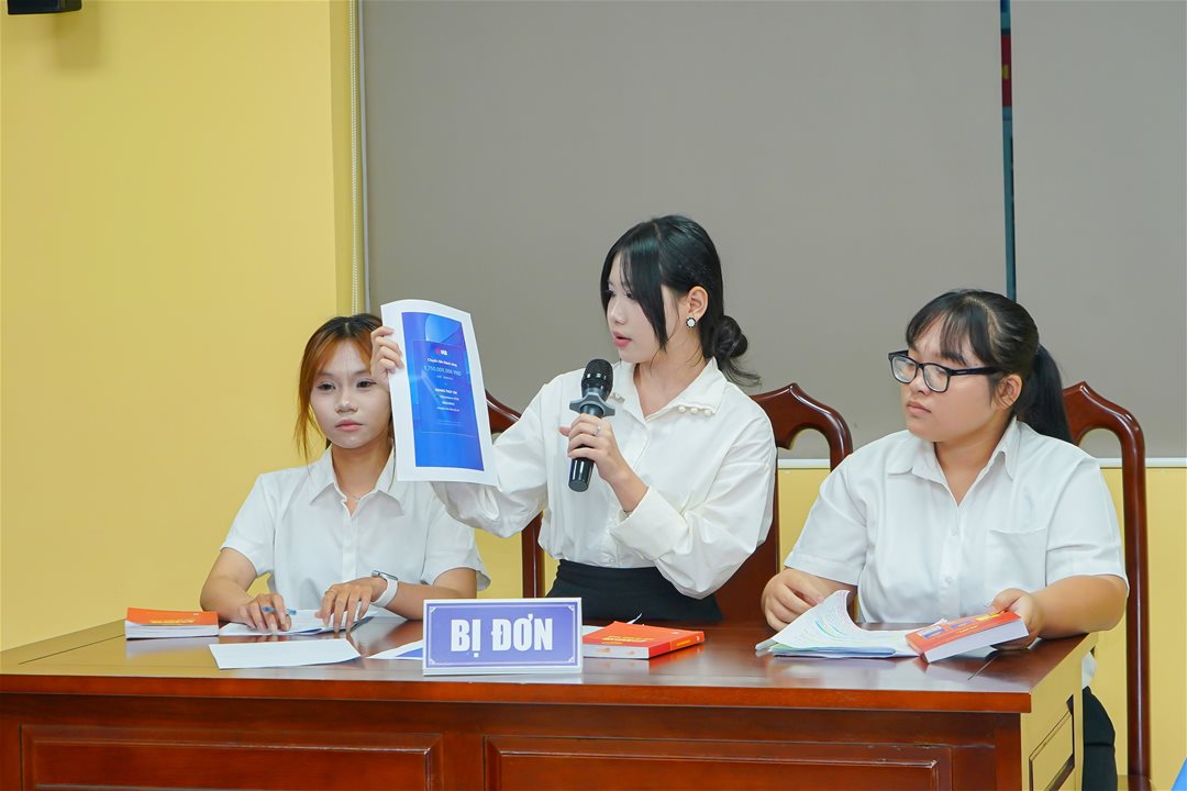 At this stage, teams were randomly paired into three opposing matches, directly assuming the roles of Plaintiff and Defendant to resolve a case file on “Disputes over Loan Agreements and Joint Liability of Spouses.” This highly complex scenario required students to skillfully handle intricate issues such as fund transfers through third parties and unusual debt offset claims in practice.